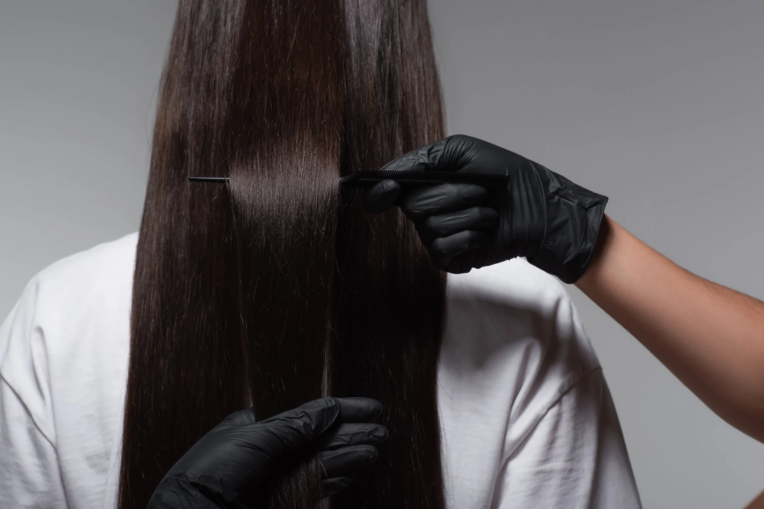 After rinsing, your stylist blow-dries your hair to reveal its sleek, shiny finish.